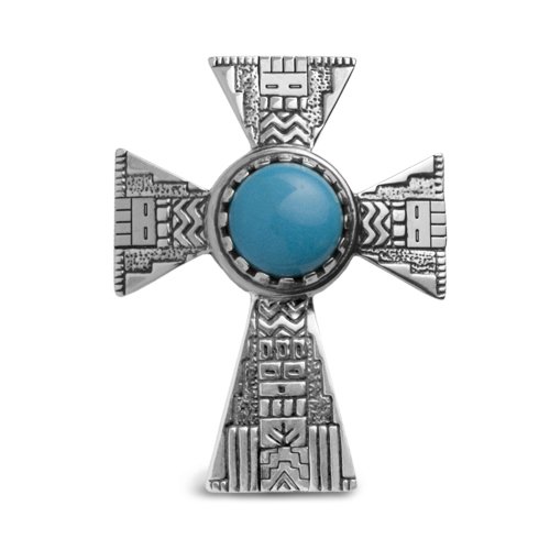 Roderick Tenorio Sterling Silver Turquoise Gentle Rain Gift Cross Enhancer Feature
