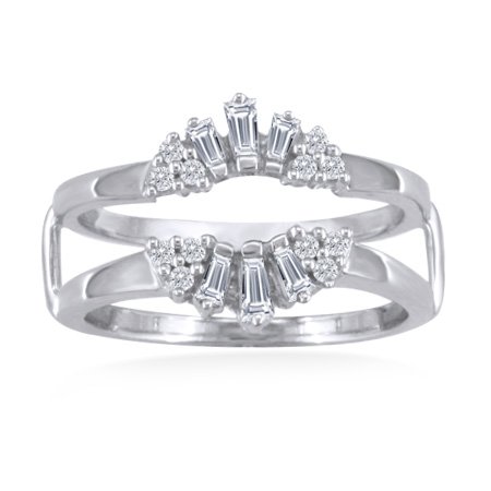 Highlight your already beautiful solitaire ring with this gorgeous diamond ring enhancer. With a total of 18 diamonds set on the 14k white gold ring, your finger is going to dazzle! At such a great price, this enhancer ring is hard to pass up. It is a great anniversary, birthday, or any holiday gift idea for that special someone in your life; or a perfect treat for yourself just because you deserve it!