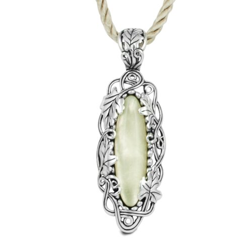 The elegance of California wine country is represented by this lovely enhancer! The color of fine white wine, an oval citrine and white mother of pearl doublet radiates from a center surrounded by leaves and vines in detailed sterling silver openwork. An elegant addition to any collection, enhancer measures 2-7/8" L x 1" W and has a snap hinge bail. An 18" L beige rayon cord with a lobster claw clasp is included for contemporary versatility; can also be worn on your favorite chain. Proudly made in New Mexico, USA with fair labor. We do our part for the environment by crafting our jewelry from recycled genuine .925 sterling silver.